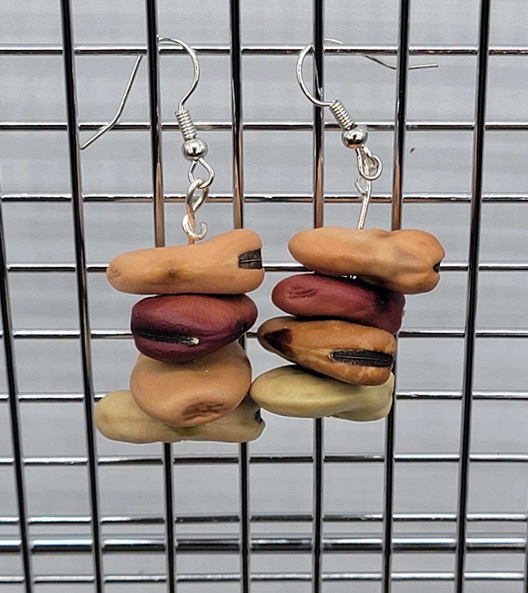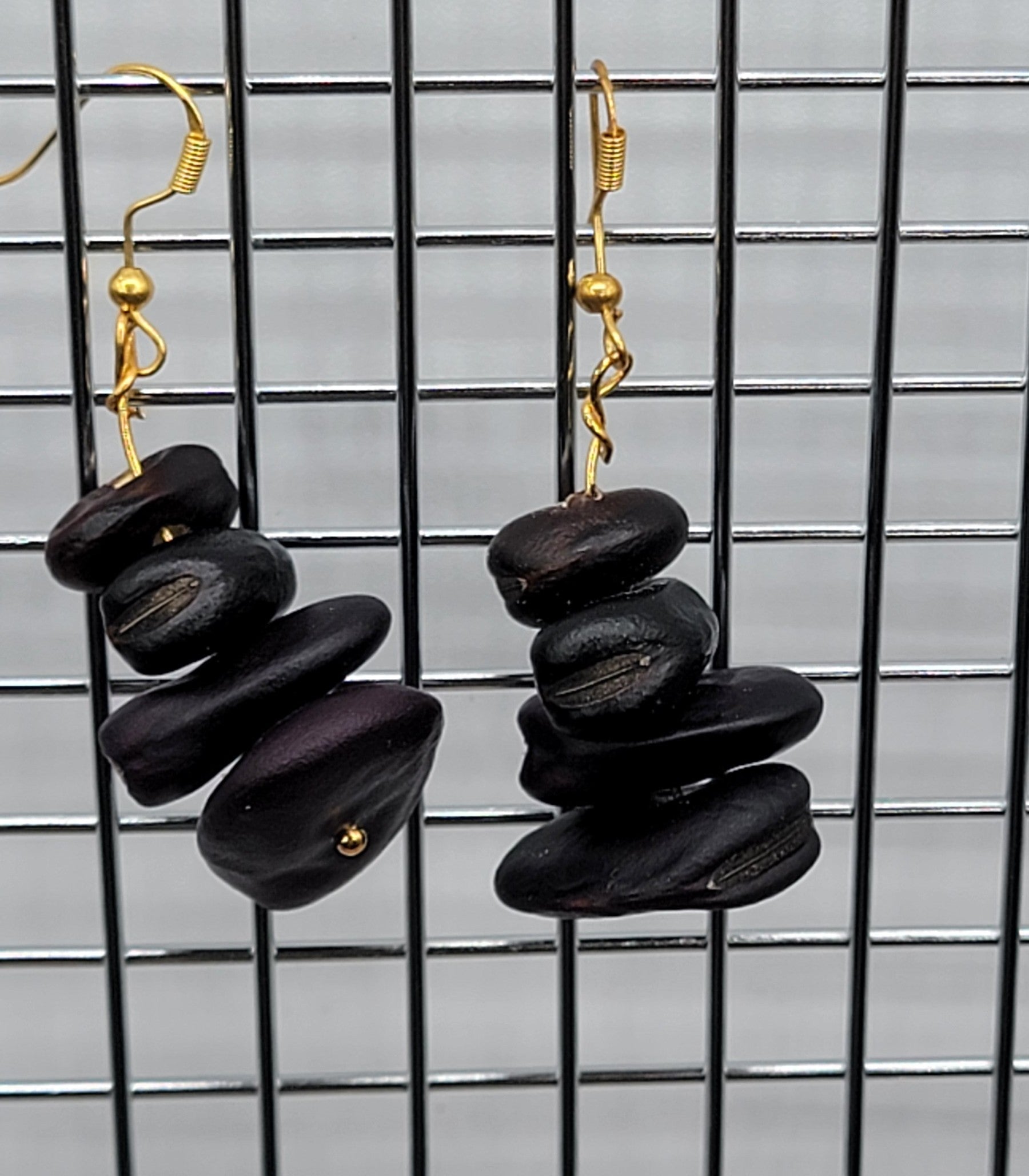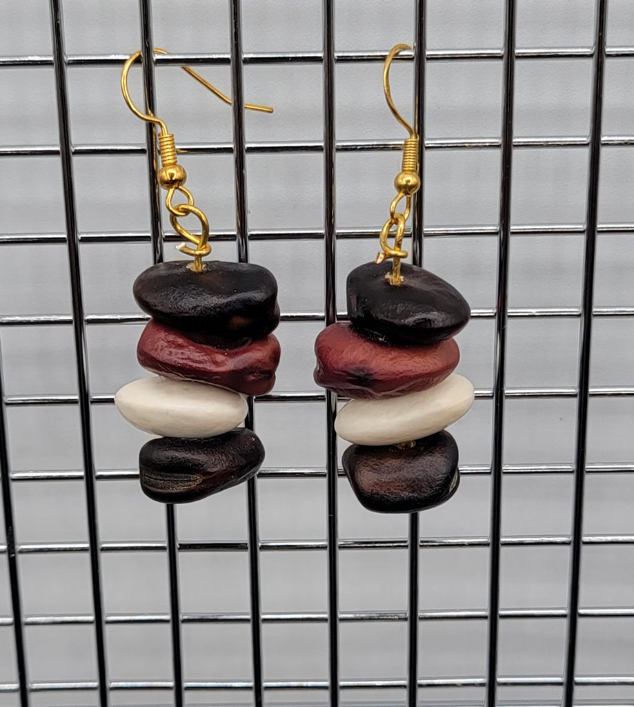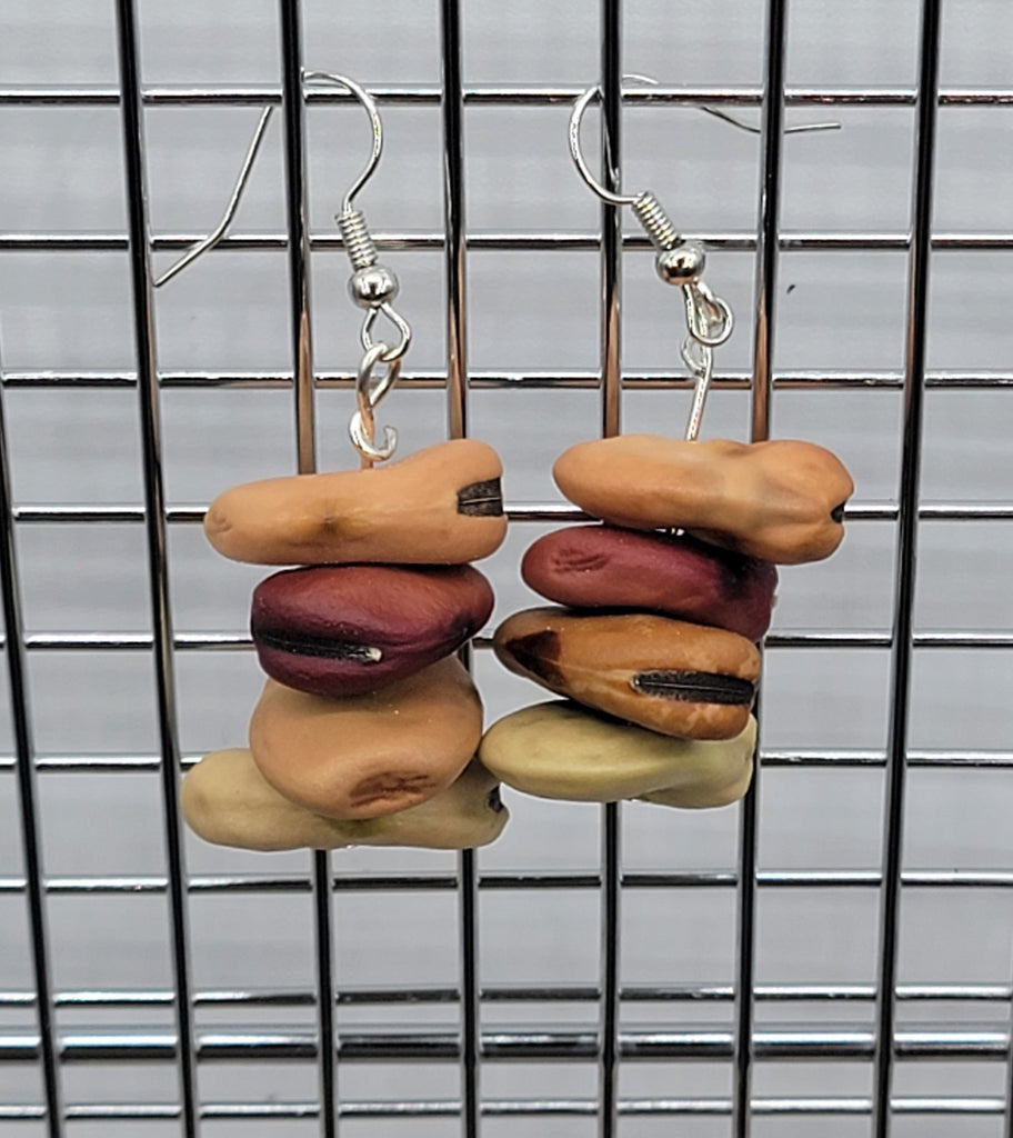 Handmade earrings made from Fava Beans. Each string has four dried fava beans. No two sets are exactly alike. Choose from these varieties: