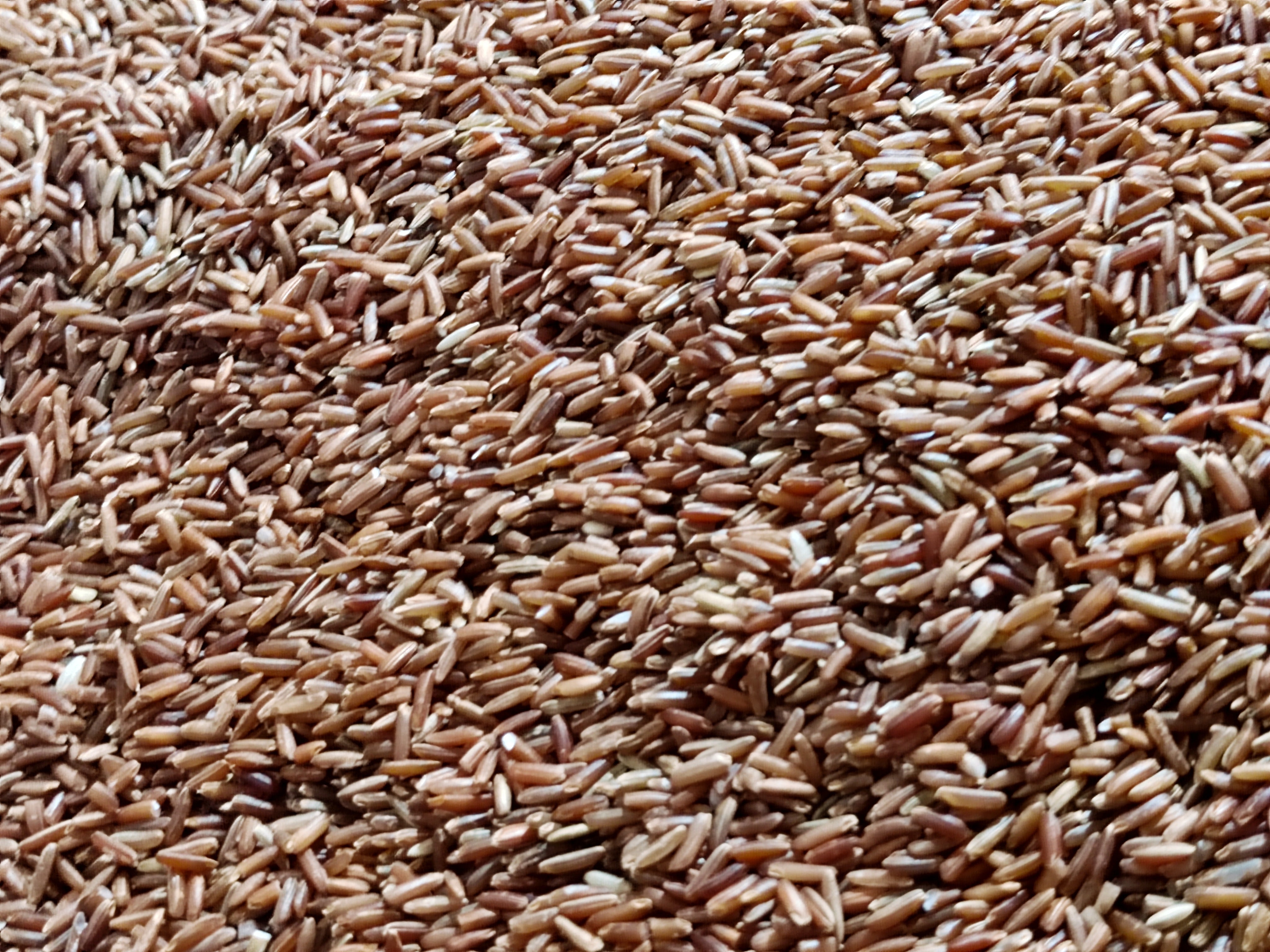 This heirloom rice is distinguished by its rich, brick-red husk and deep scarlet bran layer, which retain their hue even after cooking. The grains are long and slender with a slightly firm texture and earthy aroma. Scarlet Red Rice grows in compact, upright clumps reaching 3–4 feet tall, producing graceful panicles laden with colorful grains. It is a photoperiod-sensitive, medium-duration rice, known for its adaptability to both lowland paddies and upland fields with adequate irrigation.